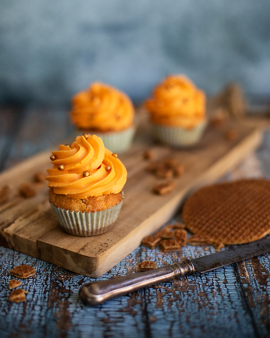 Oranje boven! Vier koningsdag met deze vrolijke cupcakes met stukjes stroopwafel en oranje botercrème. …