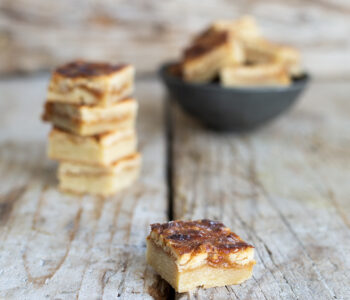 Bak de boterkoek in 25 tot 30 minuten gaar. Laat goed afkoelen voordat je hem aansnijdt.
