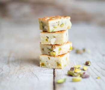 Pistache boterkoek met witte chocolade