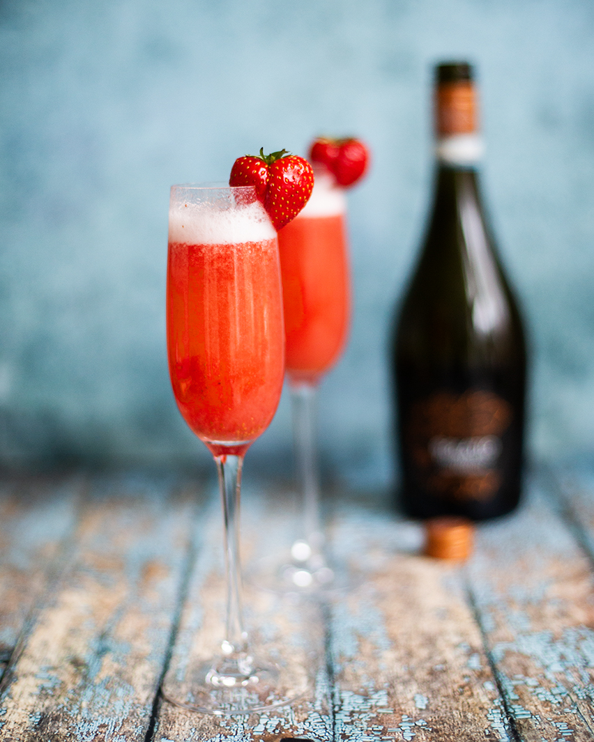 Schenk in een champagneglas voor ongeveer 1/3 vol met aardbeiensap. Schenk daarna vol met Prosecco. Roer even door en serveer. Je kunt de met die hoeveelheid aardbeiensap 'spelen'. Wil je hem wat zoeter dan voeg je wat meer aardbeiensap toe en wil je hem minder zoet dan voeg je minder toe.