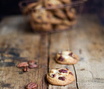 Smelt de melkchocolade au bain-marie. Smelt de witte chocolade au bain-marie. Giet de gesmolten melkchocolade over de karamellaag. Giet hierover de witte chocolade en maak er met een sateprikker een marmereffect in. Zet in de koelkast om op te stijven. Snijd er later kleine stukjes van. Hierbij is het handig als de shortbread al even uit de koelkast is zodat je makkelijker door de chocolade kan snijden. Het warm maken van je mes onder de hete kraan en daarna afdrogen helpt ook om de chocolade zonder dat hij breekt te kunnen snijden.